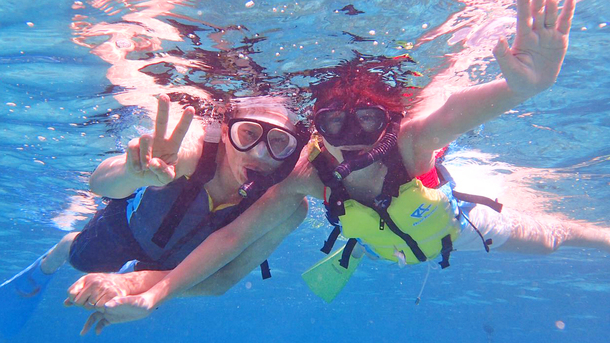 シュノーケリング体験で、水中に生息する亜熱帯の生態系や環境問題について観察します。近年発生した「サンゴの白化」への影響などを実際に見て体験します。
