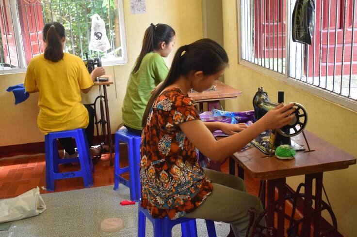 新しい仲間と共に裁縫を学びながら、昼食を囲むひとときは特に楽しみにしている時間だそうです。お互いに励まし合いながら学ぶ姿からは、強さと希望が伝わってきます。
