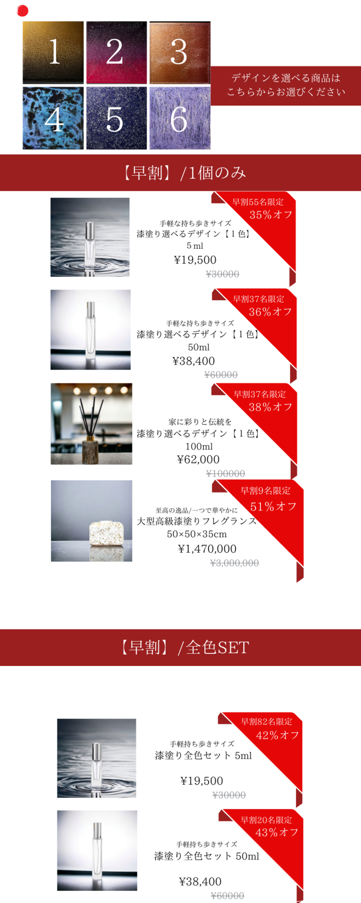 お客様のご要望に応じて、漆の色やデザインパターンをカスタマイズすることが可能です。