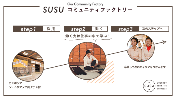 僕たちSUSUでの活動を通して、より多くのカンボジアの女性たちが自分自身に自信と誇りを持ち、前向きに自分の人生を歩む人が一人でも多く巣立っていってほしいと願っています。その事業を運営するための資金の一部を皆さまにサポートしていただけると嬉しいです!