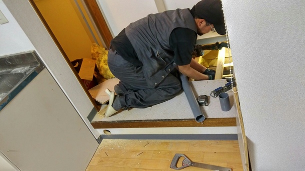 昼間お仕事されているので夜中2時までかかって水道工事と壁修復の夜間作業してくださってます。