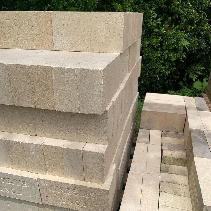 今回の作業では、解体した窯で使っていたレンガ(割れなどがないもの)約2000個に、約1100個のレンガを加え、薪窯を再建していきます。