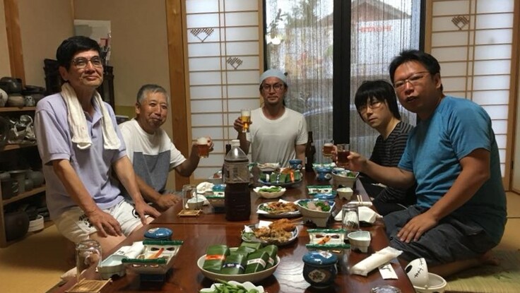 珠洲の祭りは、岡山や備前で見られるものとは一味も二味も違った趣があります。夏から秋にかけて各地で行われる「キリコ祭り」や特別な祭礼は、地域の皆さんによって大切に守られており、珠洲の魂を感じることができます。備前焼作家の森大雅(左から二人目)、藤田祥(左)、森敏彰(右)も珠洲へお邪魔した際には、いくつかの”祭り”に参加させていただきました。
