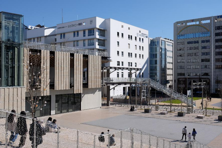 シンフォニー病院はJR宇都宮駅の東口駅前にあり、宮みらい地区の開発の一環として建設されました。いまは、駅並びに駐車場、テラスなどの他の施設と、通路陸橋でつながっていません。階段を下りて、いったん外の道路にでてから1階入り口から入るのが現状です。