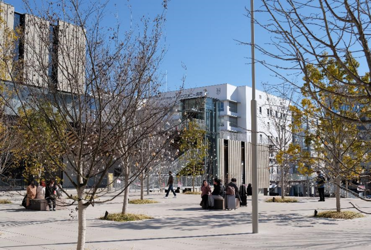 駅から同じ面のテラスと通路をつたわって病院2階の入り口に入れるように、