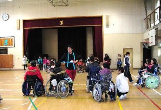 (特別支援学校でのレク指導の様子)