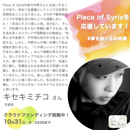 私も皆さんと一緒に、シリアの小さな一つのカケラになれたらと思います。