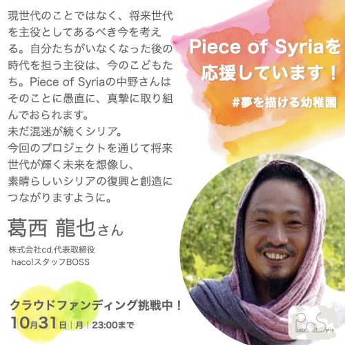今回のプロジェクトを通じて将来世代が輝く未来を想像し、素晴らしいシリアの復興と創造につながりますように。