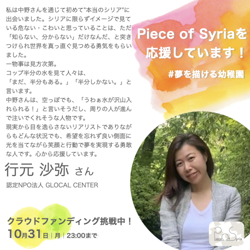 <応援メッセージ>行元沙弥さん(認定NPO法人 GLOCAL CENTER)