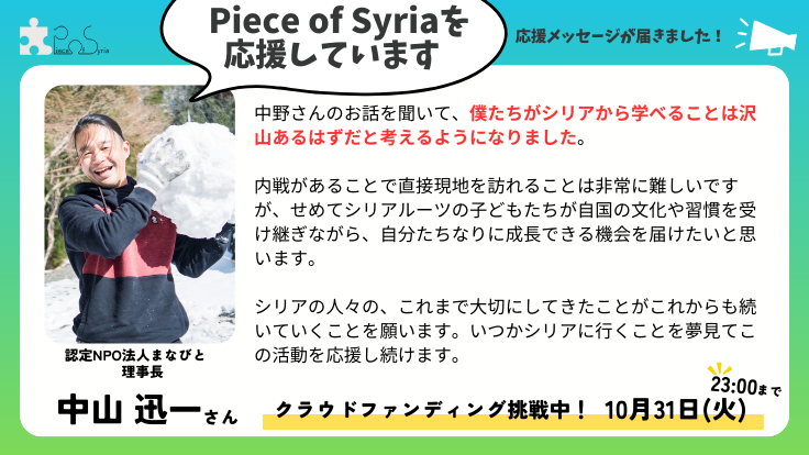いつかシリアに行くことを夢見てこの活動を応援し続けます。