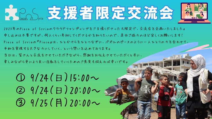 2023年のPiece of Syriaのクラウドファンディングをご支援くださった方限定で、交流会を企画いたしました。
