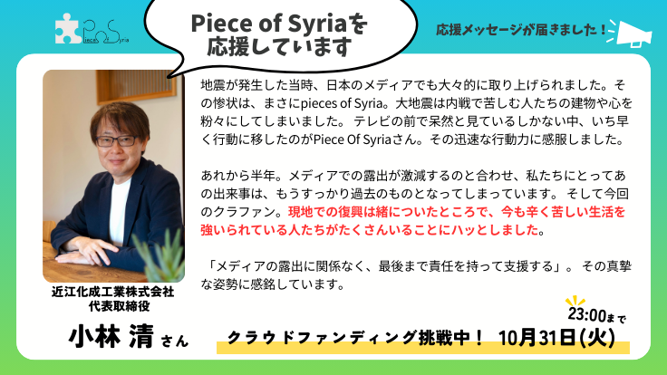 【応援メッセージ】近江化成工業株式会社 代表取締役 小林清さん