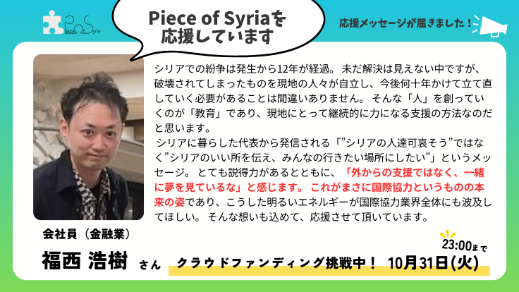 【応援メッセージ】会社員(金融業)福西 浩樹さん