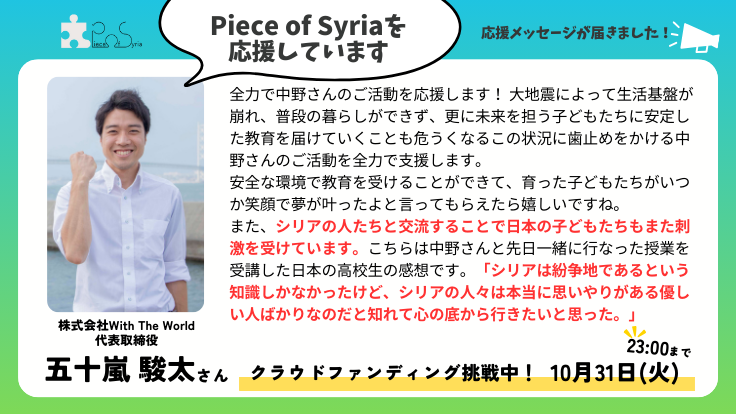 【応援メッセージ】株式会社With The World代表取締役 五十嵐駿太さん
