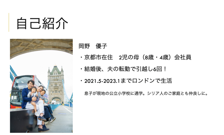 ・正直シリアや国際協力は少し遠いテーマに感じていたのですが、母としての姿勢、仕事への向き合い方、やりたいことを実現するためのステップ、色んな角度から参考になりました!