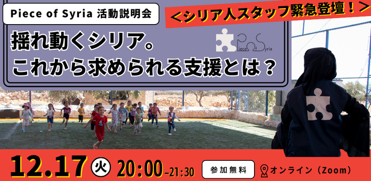 【本日20時から】ご支援者限定交流会を開催します。12/17(火)はシリア人スタッフ登壇の活動説明会