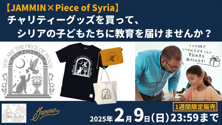 【2/9(日)まで】JAMMINさんコラボ:チャリティーグッズを買って、シリアに教育支援を!
