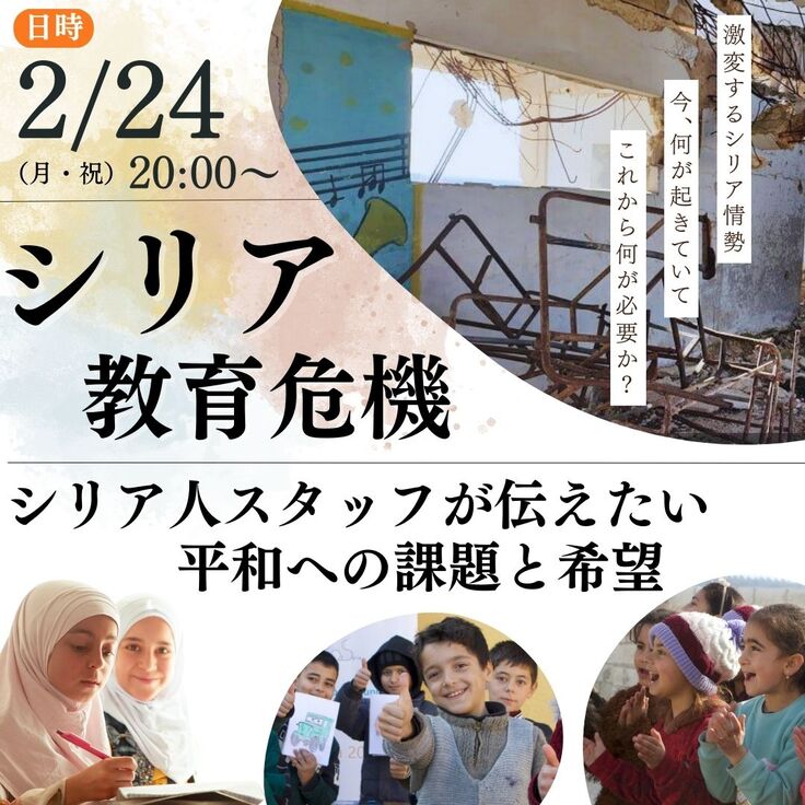【2/24(月・祝)】シリア教育危機〜シリア人スタッフが伝えたい平和への課題と希望〜