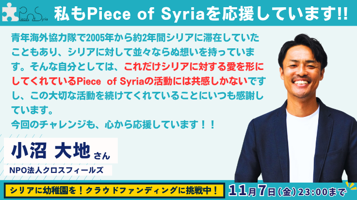 NPO法人クロスフィールズ・小沼 大地さんから応援のメッセージが届きました!!