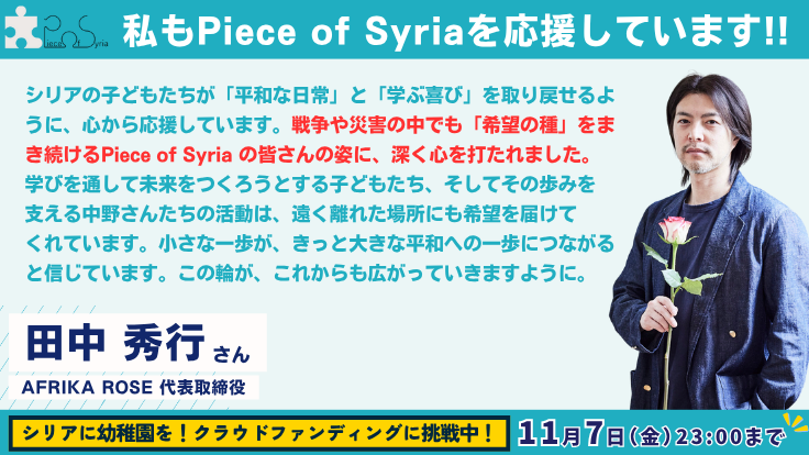 AFRIKA ROSE 代表取締役 ・田中 秀行さんから応援のメッセージが届きました!!