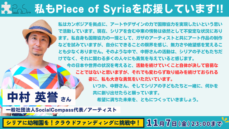一般社団法人SocialCompass代表/アーティスト・中村 英誉さんから応援のメッセージが届きました!!