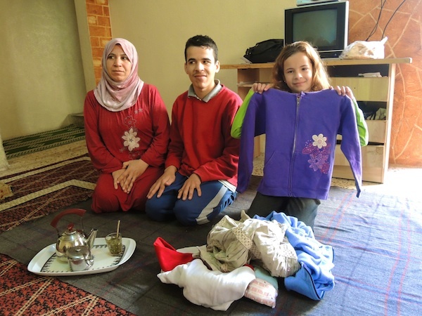 家族構成は母(写真左)、長男20歳(写真中央)、次男14歳、長女9歳(写真右)の4人家族で、父親は2005年に病死。写真は日本から持参した洋服を届けた時の様子。