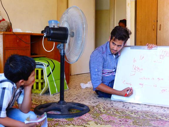 こんにちは。Makoです。イラク人でシリア難民およびイラク難民支援をボランティアでしているアブダッラーの取材しました。彼が教えている英語のクラスには、大人から子どもまで12人の生徒がいて、そこで生徒たちは、日常で使える様々な表現を学んでいました。