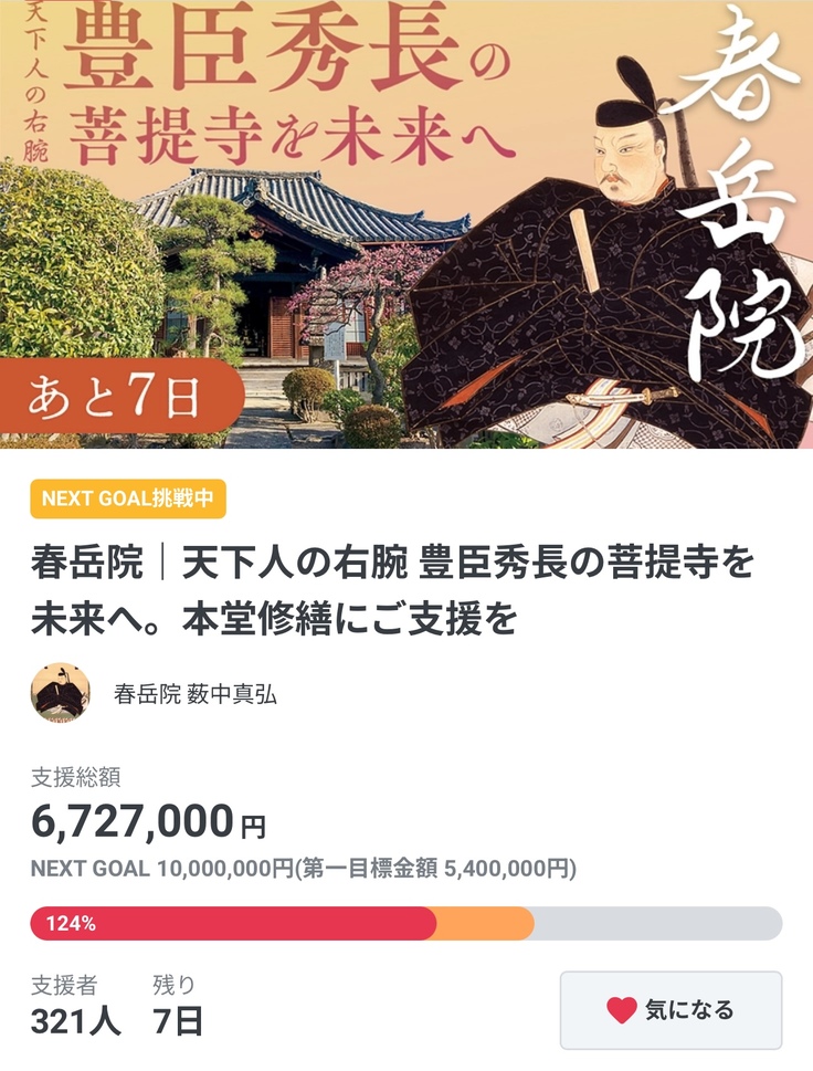 いつもプロジェクトを応援いただき誠にありがとうございます。