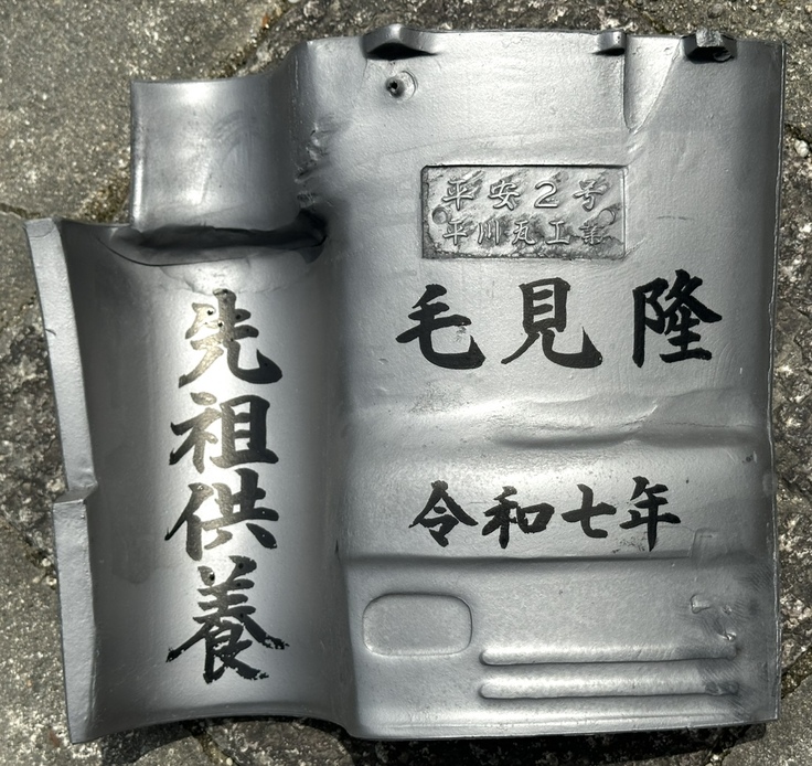 新たに葺き替える本堂屋根の瓦をご奉納いただきます。瓦裏面にご希望のお名前と「一願成就」を春岳院が書き入れさせていただきます。