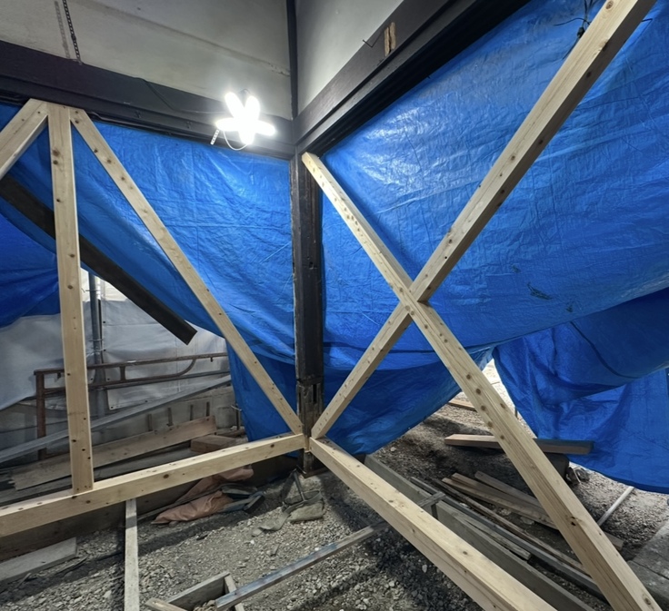 傷みの少ない木材や梁上部の白壁と使える箇所は