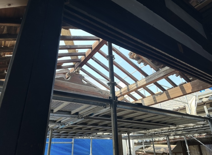 そんな向拝の屋根は傷みも激しく、一部の飾り・彫りがある部分以外は、ほぼ新しい木材を使用していくこととなりました
