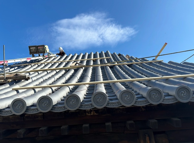 新たに葺き替える本堂屋根の瓦をご奉納いただきます。瓦裏面にご希望のお名前と「一願成就」を春岳院が書き入れさせていただきます。