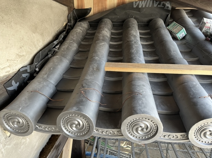 新たに葺き替える本堂屋根の瓦をご奉納いただきます。瓦裏面にご希望のお名前と「一願成就」を春岳院が書き入れさせていただきます。