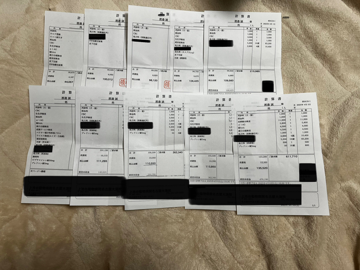 ページ上に掲載している診断書や診療明細書などの資料は全て動物病院から掲載の許諾を得ております。
