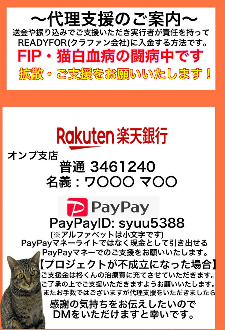 猫伝染性腹膜炎を患ったポンちゃんの明日をつないで頂けないでしょうか