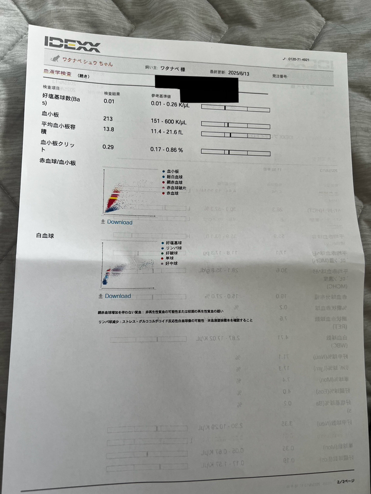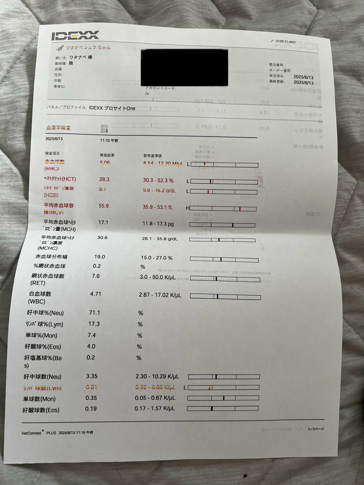 今fipよりもどちらかといえば猫白血病が心配なのですが血液検査の結果見るとヘマトクリット値が少し下がっておりました。