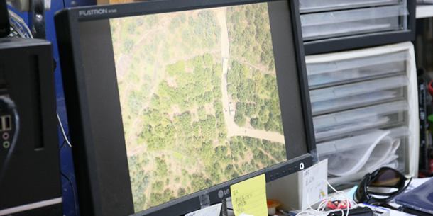 「おー!なにこれ!?山畑の空撮画像やん!写真撮っていい?こういうの使ってるんか~。最先端のIT農業は違うな~!)