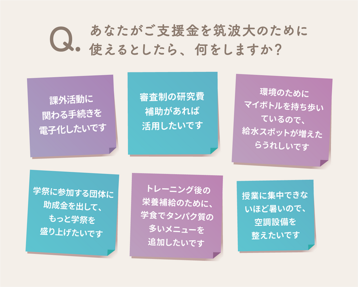 “If you could decide how donations can be spent for the University of Tsukuba, what would you spend the money on?”