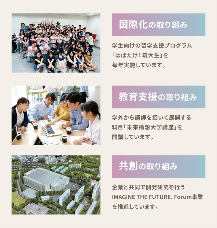 Since its inception, the University of Tsukuba has modeled itself on leading