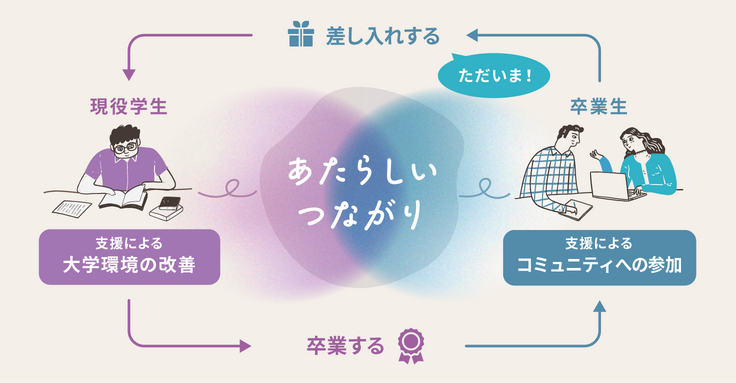 to the alma mater with the sashiire of their own. We’d like to build such“cycle of tadaima" for the next 50 years.