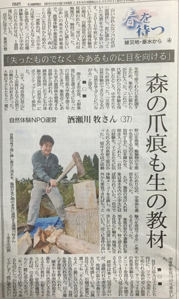 南日本新聞様が台風16号で被災した後の垂水地区の様子を現地の方達を通して伝える記事の掲載がされていますのでご報告します。