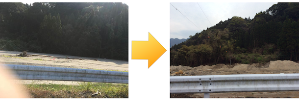 、、、地権者の関係で復旧ができない箇所や、公費の関係でガードレール・橋の復旧がまだ出来ていない所はまだあります。