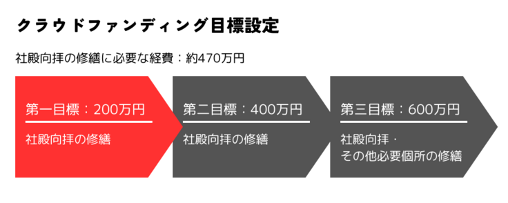 プロジェクト本文にも書かせていただきましたが、向拝修繕に必要な経費は約470万円、式年大祭を含めた総事業費は約700万円を計画しています。