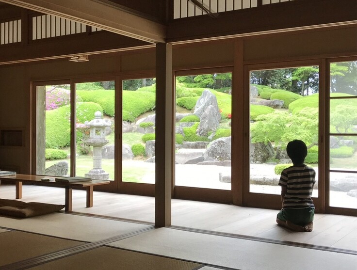 庭の奥より日本海が望めるこの庭園は、日本有数の名園です。