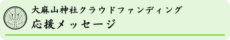 この度の式年大祭を斎行するに当たり、数々の記念事業に対し皆様方の賛同を戴きたく、又大麻山神社を全国の人達に知って戴きたいと、氏子の若人を中心に心を一つに力を合わせて丁寧に企画され、立ち上げたクラウドファンディングに数多くの皆様方の御理解と御力添えを賜りますよう、心よりお願い申し上げます。