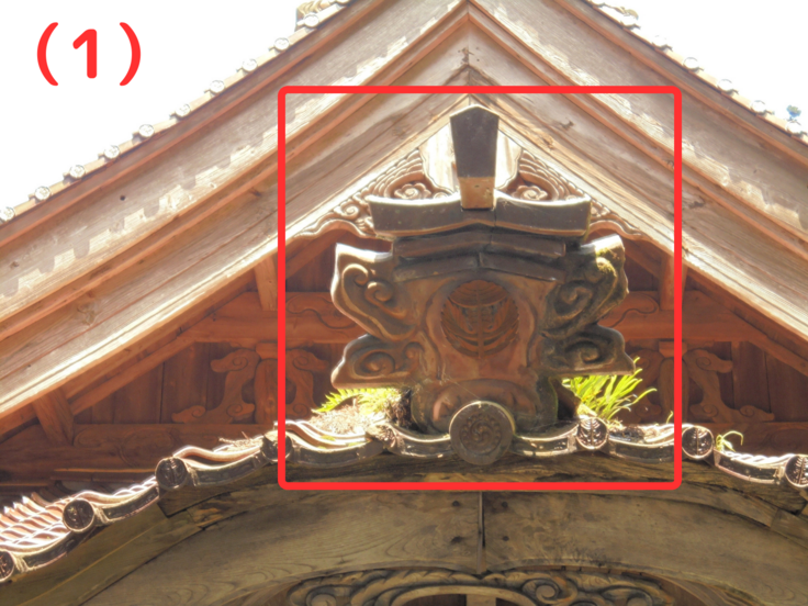 (1)須山(鬼瓦の下端に隅巴瓦の入る丸みの繰りがある形状の隅鬼瓦のこと)が割れて応急的に修理されていましたが、新しく製作し取り付けます。