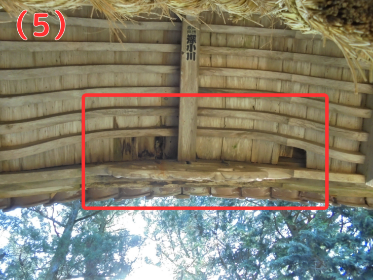 (3)向拝の屋根の葺き替えを行います。また、捨て谷(屋根の表面からは見えないよう作られた集水加工された部分)も取り替えます。