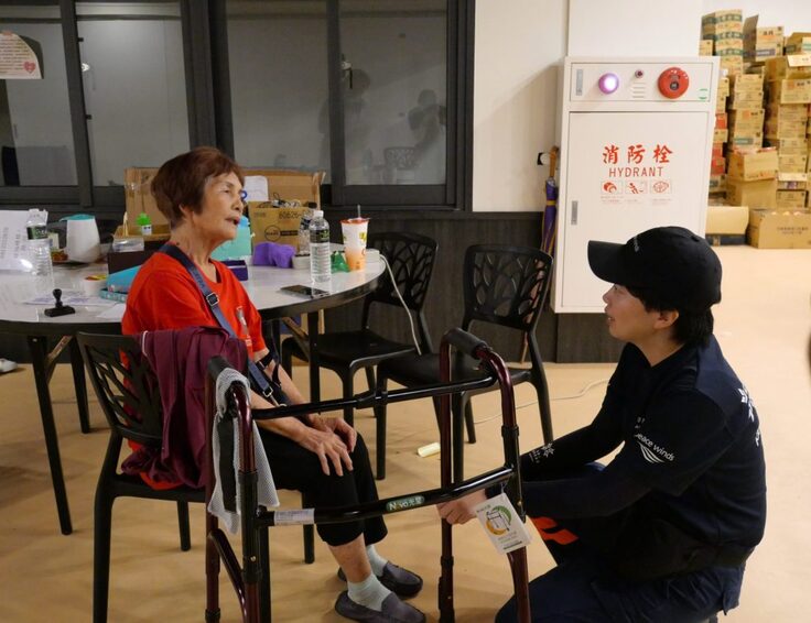 また、光復郷の街には、そんなヒーローたちをサポートする存在もいます。私たちがお会いしたのは、泥かき作業で疲れた被災者やボランティアたちのためにマッサージを施すボランティア団体です。