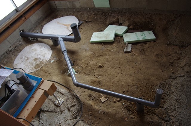 業者さんが入って、給排水、ガス管の基礎工事をしていただきました。