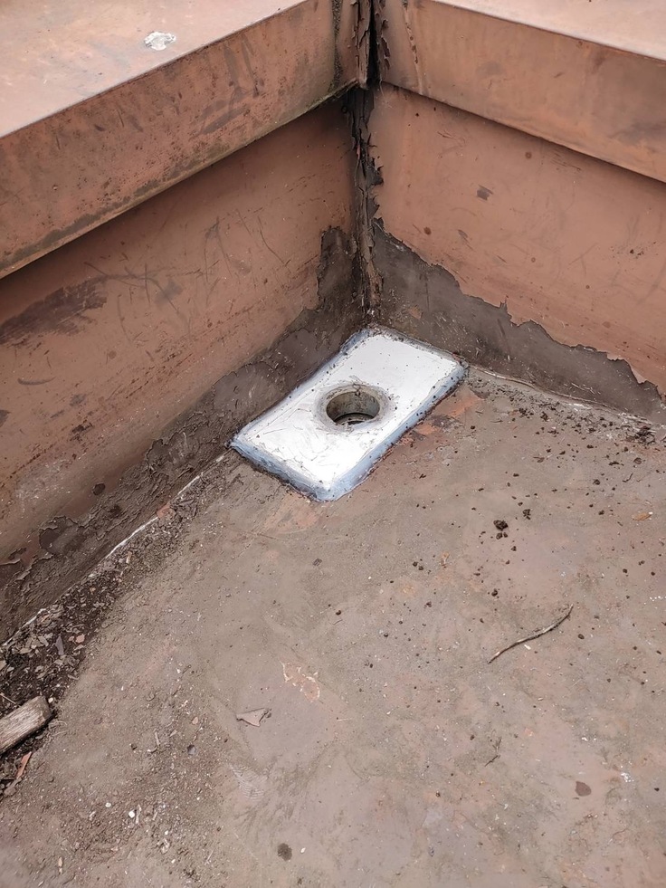 また、床面と雨樋の間のコーティングがとれて大きな隙間がありそこから浸水しているだろうとのことで応急処置をしてくださいました。これで雨漏りがとまるといいのですが🙏